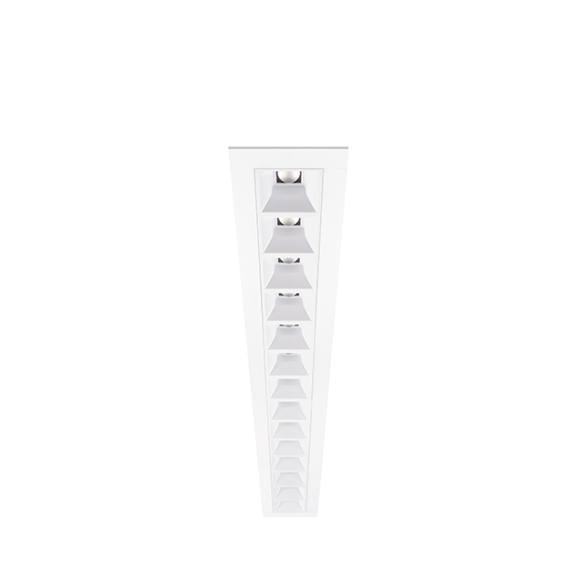 Reflector antienlluernament de 28 cel·les en acabat blanc dissenyat per garantir el confort visual.