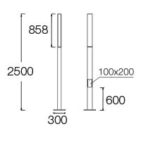 Luminaire height: 2500 mm. Luminous section length: 858 mm.