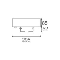 Linear fixture in 295mm length, width of 62mm and height of 85mm.